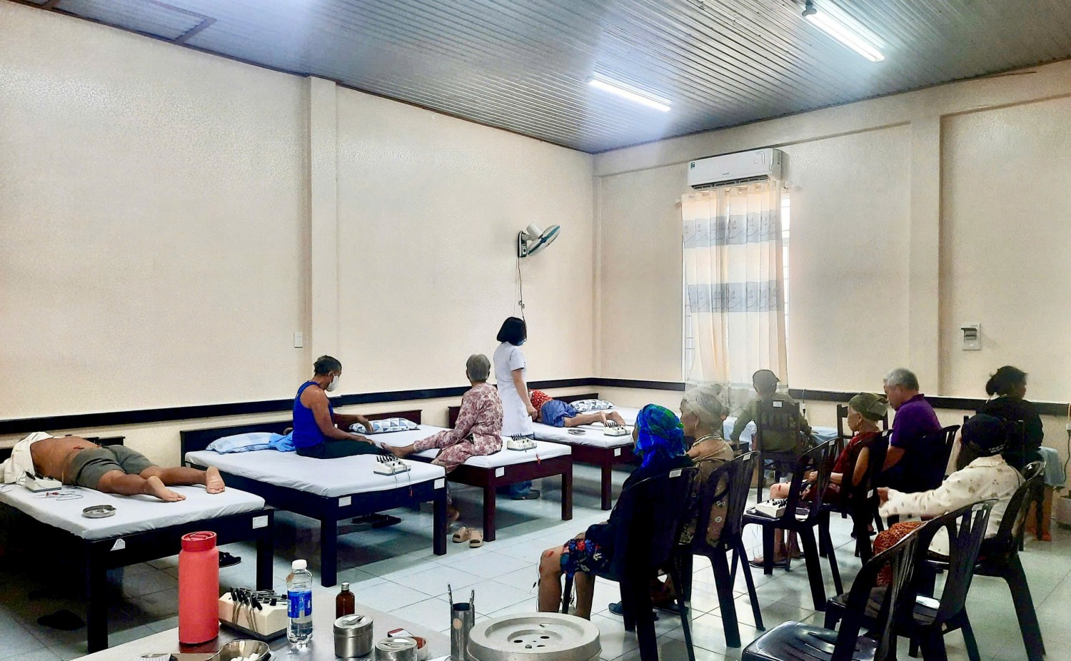 Nhân viên y tế chăm sóc, theo dõi sức khỏe và hỗ trợ điều trị cho các cụ