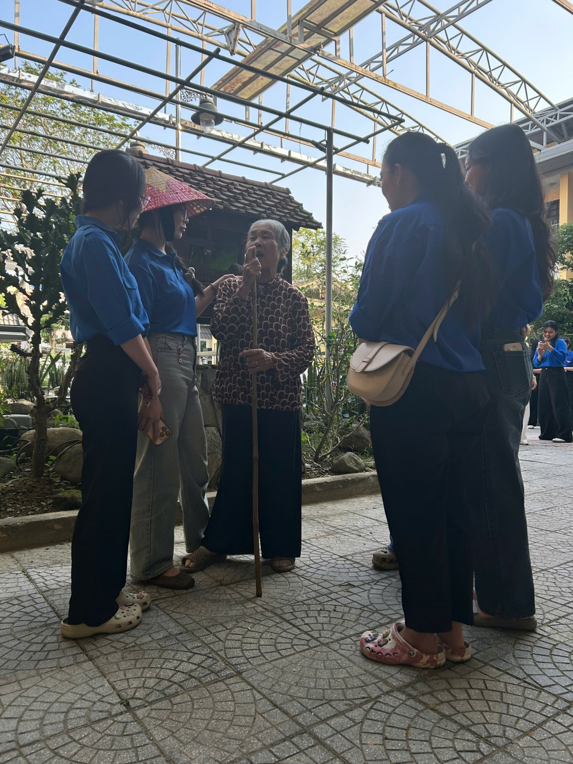 Các bạn sinh viên trò chuyện với người có công